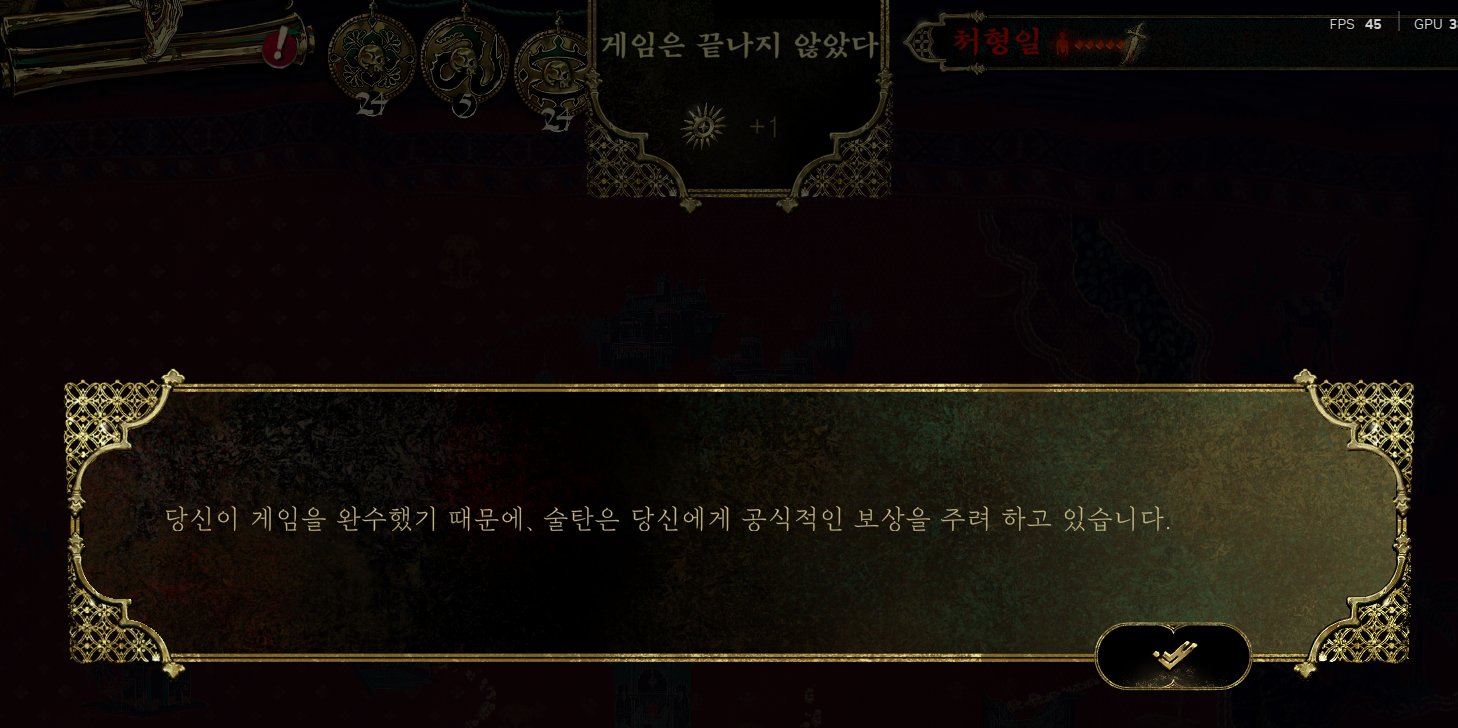 재미있긴한데 하...술탄 따먹는건 고사하고 능지 이슈로 여러 엔딩 볼 기력이...